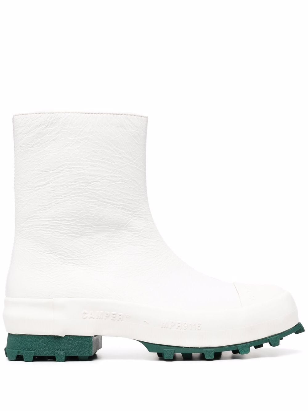Traktori boots CamperLab places comfort as a priority with these Traktori ankle boots. The footwear boasts a vulcanized construction, a toothed rubber outsole and a cushioned footbed. Highlights - White - Leather - Ankle-length - Side zip fastening - Round toe - Branded insole - Ridged rubber sole Imported Composition Leather 100% SIZE & FIT Measurement CIRCUMFERENCE 9.84 in(25 cm) HEEL 1.57 in(4 cm) HEIGHT 6.88 in(17.5 cm) Sole height 0.98 in(2.5 cm)
