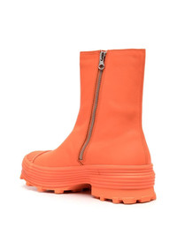 Traktori leather ankle boots Highlights - Orange - Leather - Almond toe - Rubber toecap - Side zip fastening - Flat rubber sole - Ankle-length Imported Composition Outer: Leather 95%, Rubber 5% Lining: Recycled Polyester 46%, Leather 17% Sole: Rubber 100% SIZE & FIT Measurement CIRCUMFERENCE 12.2 in(31 cm) HEEL 1.96 in(5 cm) HEIGHT 6.88 in(17.5 cm) Sole height 1.18 in(3 cm)