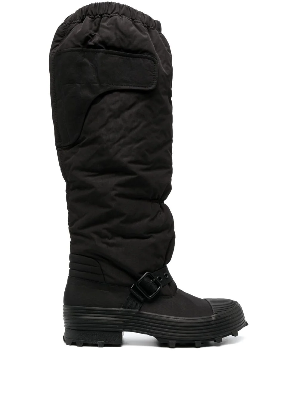 Traktori padded boots CamperLab puts a characteristically playful spin on boots with the Traktori model. The padded construction is complete with a practical rubber toecap and an elasticated band. Highlights - Black - Textured finish - Padded design - Tonal stitching - Tonal toecap - Round toe - Buckle-strap fastening - Elasticated band - Thigh-high - Flat rubber sole Imported Composition Other fibres 100%
