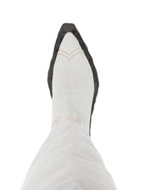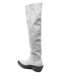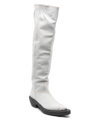 Venga denim knee-high boots Highlights - Light blue/charcoal grey - Cotton blend - Washed denim - Panelled design - Contrast stitching - Slip-on style - Pointed toe - Knee-high - Canvas lining - Chunky rubber sole Imported Composition Lining: Cotton 90%, Leather 10% Sole: Synthetic Rubber 100% Outer: Fabric 100% SIZE & FIT Measurement CIRCUMFERENCE 18.89 in(48 cm) HEEL 3.14 in(8 cm) HEIGHT 18.89 in(48 cm) Sole height 1.57 in(4 cm)