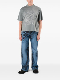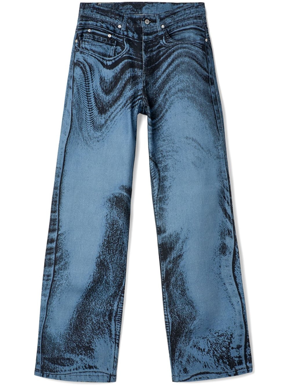 Dark Blue-Black Distorted Print Denim Jeans