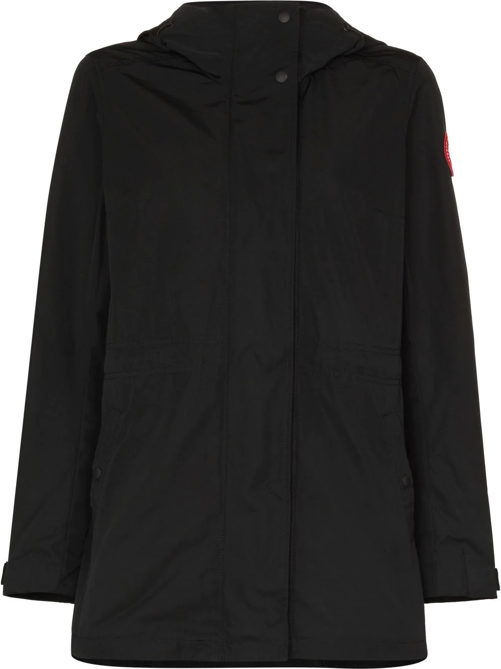 Belcarra hooded jacket Belcarra hooded jacket from CANADA GOOSE featuring black, logo patch at the sleeve, reflective detailing, internal shoulder straps, classic hood, concealed front fastening, long sleeves, two press-stud fastening side pockets and full lining. Imported Composition Outer: Polyester 100% Lining: Polyester 100% SIZE & FIT Model measurements Height 5 ft 9 in(1.76 m) Bust/Chest 33.46 in(85 cm) Hips 37.79 in(96 cm) Waist 25.59 in(65 cm) FittingInformation This piece fits true to size. We recommend you get your regular size Cut for a loose fit Made with a mid-weight non-stretch fabric Washing instructions Machine Wash