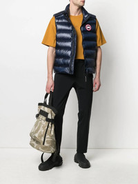 Crofton padded down gilet Highlights - Navy blue - Logo patch to the front - Padded design - Two side zip-fastening pockets - Sleeveless - Front zip fastening Imported Composition Lining: Duck Feathers 100%, Recycled Nylon 100% Outer: Recycled Nylon 100% SIZE & FIT Model measurements Height 6 ft 2 in(1.87 m) Bust/Chest 37.79 in(96 cm) Hips 37.79 in(96 cm) Waist 30.31 in(77 cm) Measurement CHEST 43.3 in(110 cm) Shoulder Width 17.71 in(45 cm) FittingInformation This piece fits true to size. We recommend you get your regular size Cut for a loose fit Made with a mid-weight non-stretch fabric