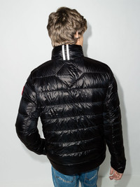 Crofton padded jacket Cold days ahead? Master chilly mornings in style with this Crofton padded jacket from Canada Goose. Winter blues are a thing of the past. Highlights - Black - Feather down/recycled nylon - Quilted - Front zip fastening - High neck - Logo patch at the sleeve - Two side zip-fastening pockets Imported Composition Lining: Duck Feathers 100%, Polyamide 100% Outer: Polyamide 100% SIZE & FIT Model measurements Height 6 ft 1 in(1.85 m) Bust/Chest 37 in(94 cm) Hips 34.64 in(88 cm) Waist 27.16 in(69 cm) Measurement BUST 41.73 in(106 cm) FittingInformation Designed for a regular fit, allowing for a comfortably loose fit throughout the body The internal drawstring at the hem allows for fitted preferences Made from a padded non-stretch fabric, giving it no natural elasticity This piece fits true to size – take your usual size Washing instructions Machine Wash