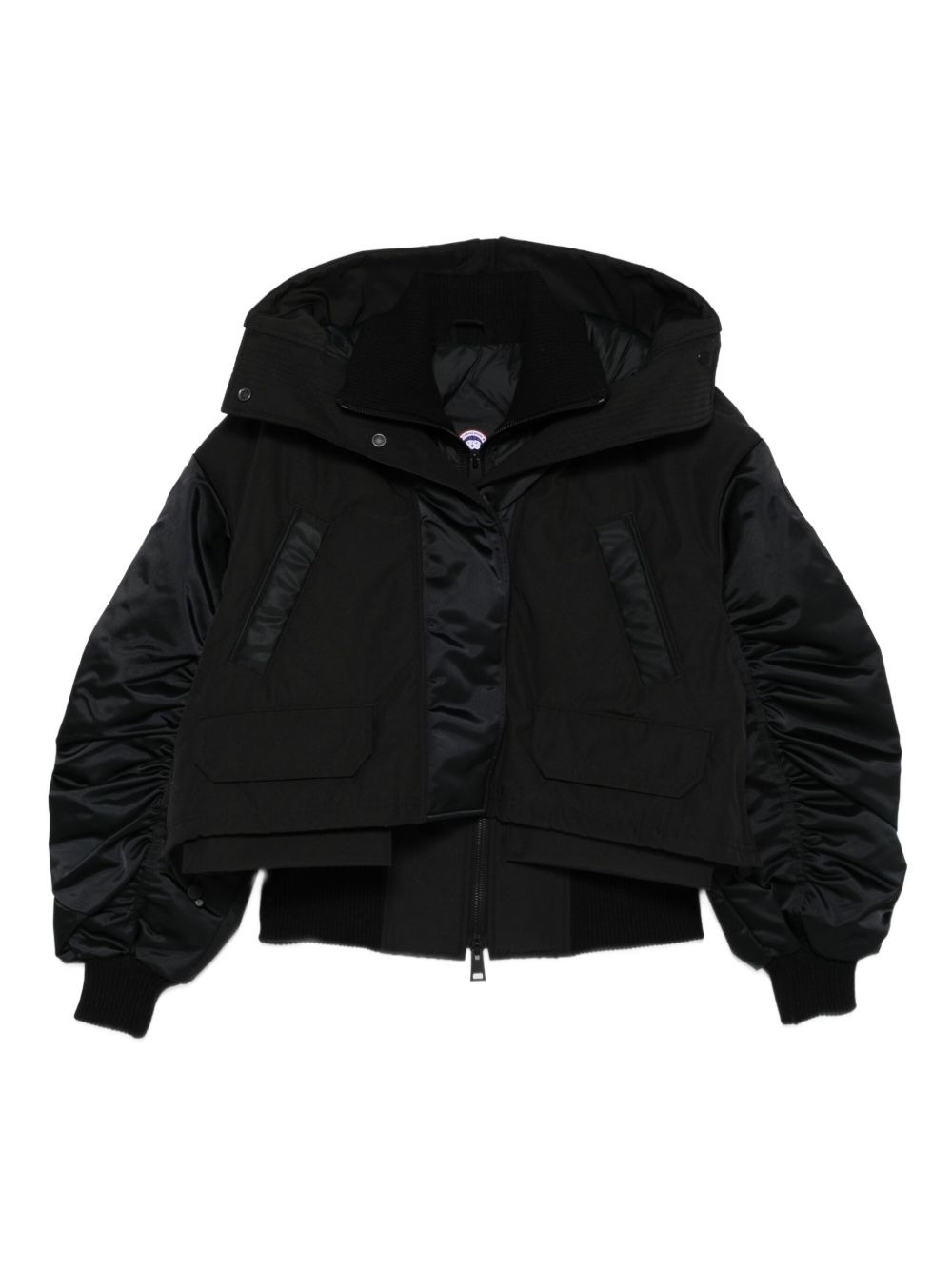 double-neck jacket Highlights - Black - Ruched sleeves - Double neck - Zip front fastening - Ribbed hem - Multiple pockets Imported Composition Fabric 100% Washing instructions Read Manufacturer Guidelines