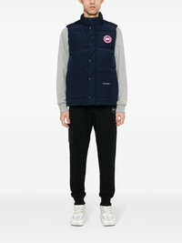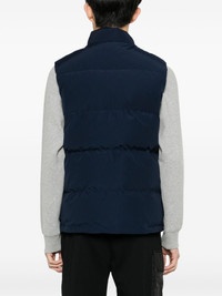 Freestyle vest Highlights - Navy blue - Duck feather down - Padded design - Quilted - High neck - Applique logo - Sleeveless - Two side slit pockets - Two front patch pockets - Logo tag - Full lining - Front press-stud and zip fastening Imported Composition Lining: Polyamide 100%, Duck Down 80%, Duck Feathers 20% Outer: Polyester 84%, Cotton 16% SIZE & FIT Model measurements Height 6 ft 2 in(1.87 m) Bust/Chest 33.46 in(85 cm) Hips 36.22 in(92 cm) Waist 29.52 in(75 cm) FittingInformation Designed to be unstructured, offering a loose fit throughout The internal drawstring at the hem allows for fitted preferences Made from a padded non-stretch fabric, giving it no natural elasticity This piece fits true to size – take your usual size Washing instructions Dry Clean Only