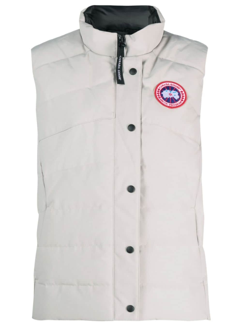 Freestyle vest This gilet is a testament to Canada Goose's commitment to exceptional craftsmanship. It's crafted to a high-neck silhouette with down-feather filling, and stamped with a signature logo patch at the chest. Highlights - Ash grey - Down-feather filling - Logo patch at the chest - High neck - Sleeveless - Front press-stud and zip fastening - Slip pockets to the sides Imported Composition Outer: Polyester 83%, Cotton 17% Lining: Polyester 100%, Duck Down 80%, Duck Feathers 20% SIZE & FIT Model measurements Height 5 ft 10 in(1.79 m) Bust/Chest 33.07 in(84 cm) Hips 35.82 in(91 cm) Waist 24.01 in(61 cm) FittingInformation Designed for a relaxed fit, this piece allows for comfort and movement when worn Made from a padded non-stretch fabric, giving it no natural elasticity This piece fits large – take one size down Washing instructions Dry Clean Only