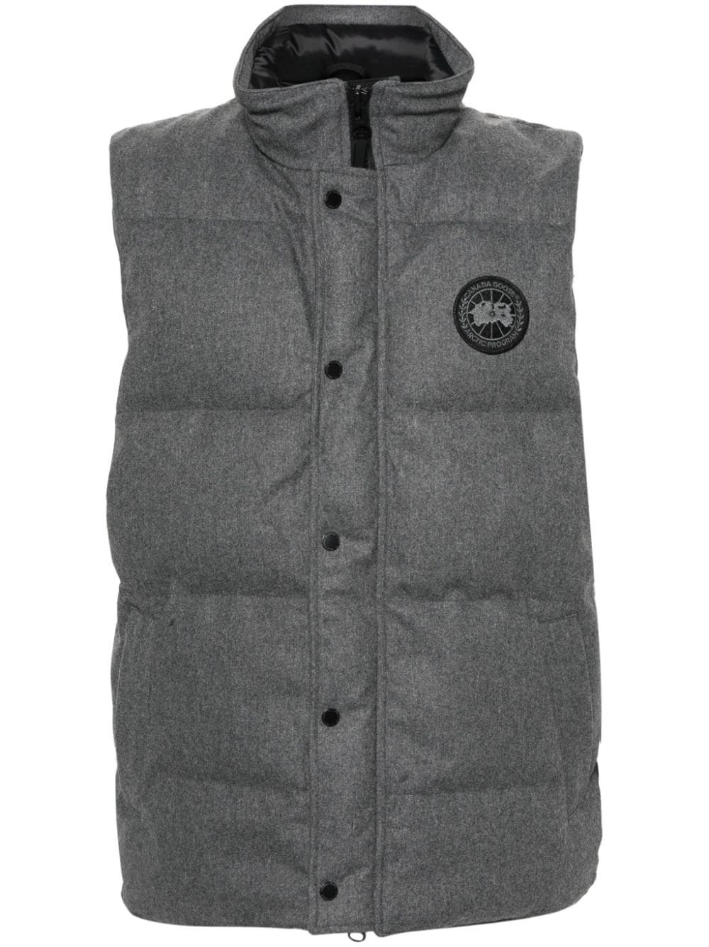 Garson vest Canada Goose's Garson gilet offers warmth for extreme weather conditions, thanks to its insulated construction. The high-low hem and high neck shields against wind. Highlights - Grey - Recycled wool blend - Duck feather down - Padded design - Quilted - Felted finish - Melange effect - High neck - Sleeveless - Applique logo - Two zip-fastening pockets - Internal patch pockets - Internal zip-fastening pocket - Authenticity qr code - Full lining - High-low hem - Front press-stud and zip fastening Imported Composition Outer: Recycled Wool 67%, Polyamide 31%, other fibers 2% Lining: Polyester 100%, Duck Down 80% Duck Feathers 100% SIZE & FIT Model measurements Height 6 ft 2 in(1.87 m) Bust/Chest 37 in(94 cm) Hips 33.85 in(86 cm) Waist 27.95 in(71 cm) Measurement CHEST 40.94 in(104 cm) LENGTH 29.13 in(74 cm) WAIST 40.94 in(104 cm) FittingInformation Designed for a regular fit, allowing for a comfortably loose fit throughout the body Made from a padded non-stretch fabric, giving it no natural elasticity This piece fits true to size – take your usual size Washing instructions Dry Clean Only