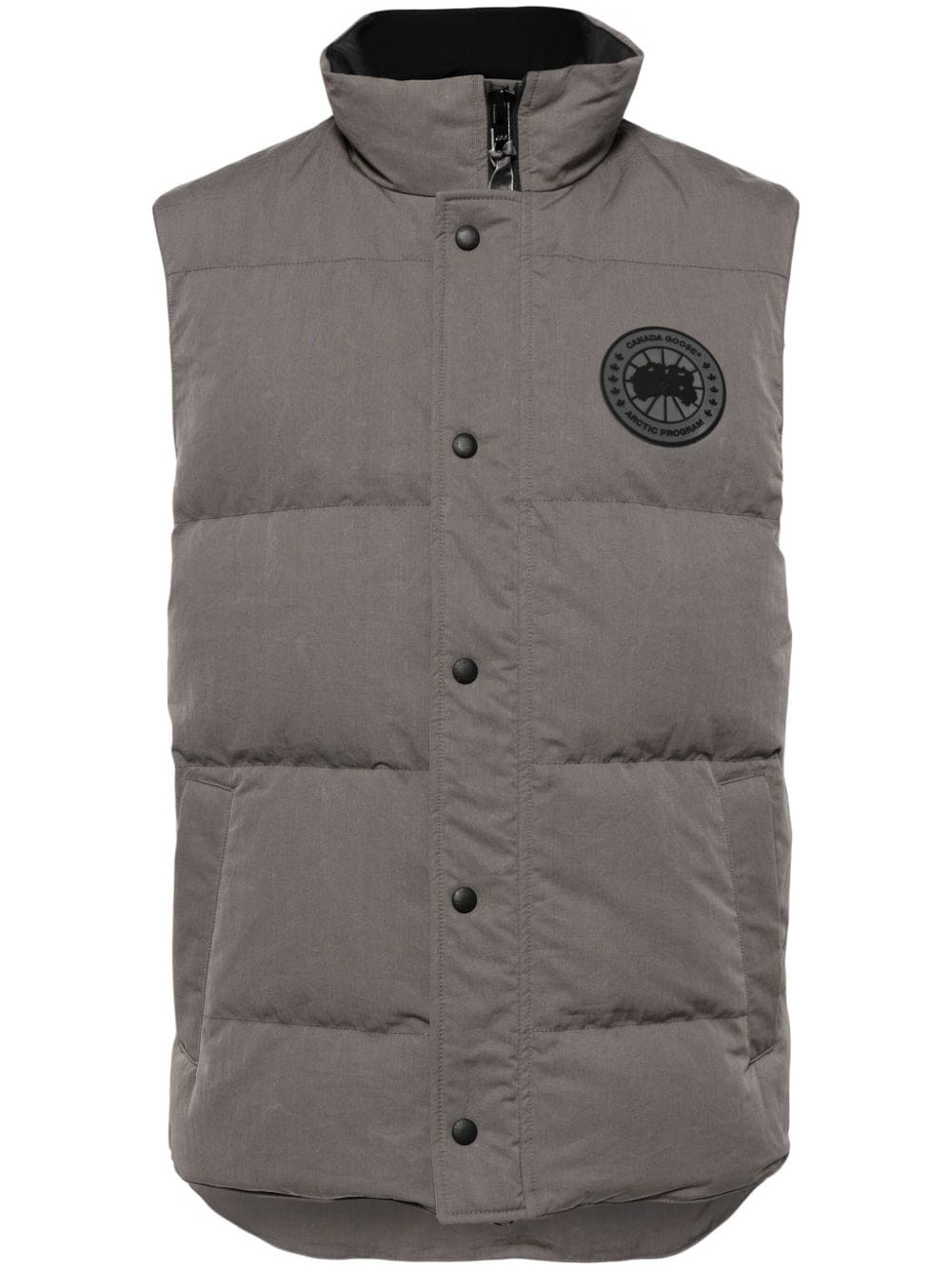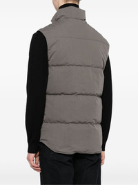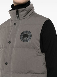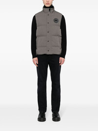 Garson padded gilet Canada Goose's grey Garson gilet hails from the brand’s Black Label – an offering defined by its more muted logo applique. It’s made from fabric engineered to withstand chill and repel water then quilted for even insulation. Handwarmer pockets and a longer back protect from the elements. Highlights - Grey - Cotton blend - Duck down - Logo patch at the chest - Padded design - High neck - Front press-stud and zip fastening - Sleeveless - Rear curved hem Imported Composition Filling: Duck Down 80%, Duck Feathers 20% Outer: Cotton 64%, Polyamide 36% Lining: Polyamide 100% SIZE & FIT Model measurements Height 6 ft 2 in(1.89 m) Bust/Chest 37.4 in(95 cm) Hips 36.61 in(93 cm) Waist 28.34 in(72 cm) FittingInformation Designed for a regular fit, allowing for a comfortably loose fit throughout the body Made from a padded non-stretch fabric, giving it no natural elasticity This piece fits true to size – if you would prefer a closer fit, take one size down Washing instructions Machine Wash