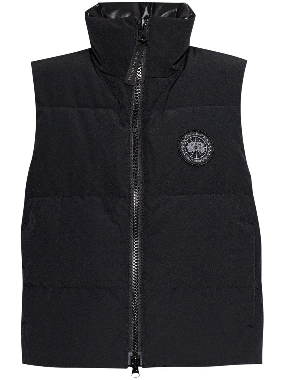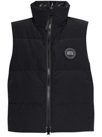 Grandview cropped vest Highlights - Black - Front zip fastening - High neck - Logo patch at the chest - Sleeveless - Two side slit pockets - Straight hem Imported Composition Outer: Polyester 100% Lining: Down 100%, Polyamide 100%, Feather 100% SIZE & FIT Measurement LENGTH 24.4 in(62 cm) WAIST 49.6 in(126 cm) BUST 48.03 in(122 cm) FittingInformation Designed to be unstructured, offering a loose fit throughout The internal drawstring at the hem allows for fitted preferences Made from a padded non-stretch fabric, giving it no natural elasticity