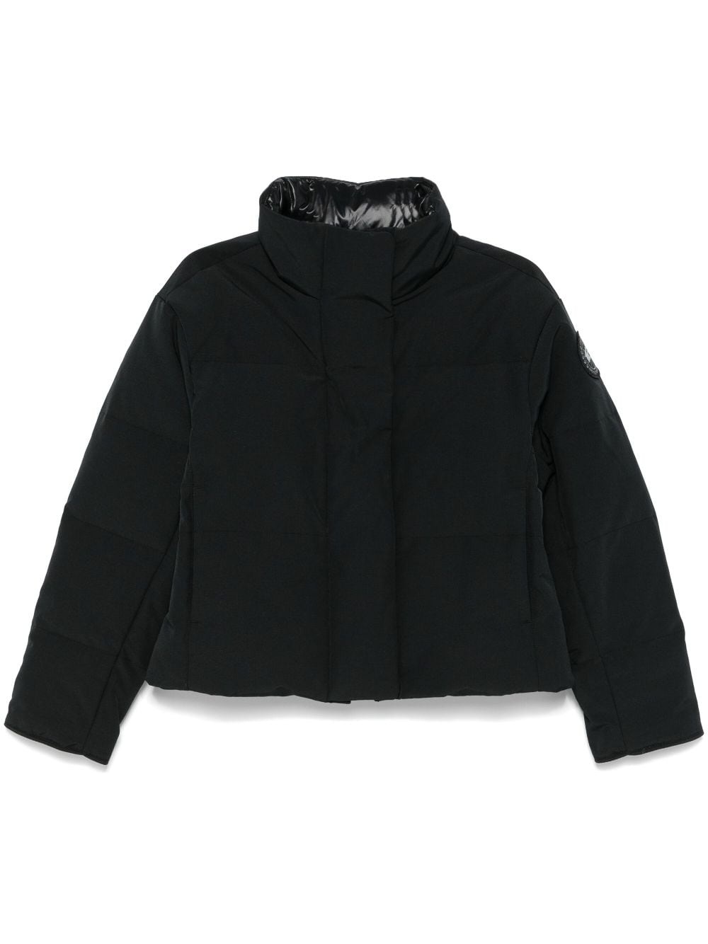Grandview jacket Highlights - Black - Textured finish - Concealed front press-stud fastening - Concealed front zip fastening - Padded design - Duck down blend filling - Stand-up collar - Long sleeves - Applique logo - Two side zip-fastening pockets - Straight hem - Cropped Imported Composition Outer: Polyester 84%, Cotton 16% Lining: Polyamide 100%, Duck Down 80%, Duck Feathers 20% SIZE & FIT Model measurements Height 5 ft 11 in(1.8 m) Bust/Chest 33.07 in(84 cm) Hips 37.4 in(95 cm) Waist 25.19 in(64 cm) FittingInformation Designed for a relaxed fit, this piece allows for comfort and movement when worn The internal drawstring at the hem allows for fitted preferences Made from a padded non-stretch fabric, giving it no natural elasticity
