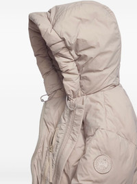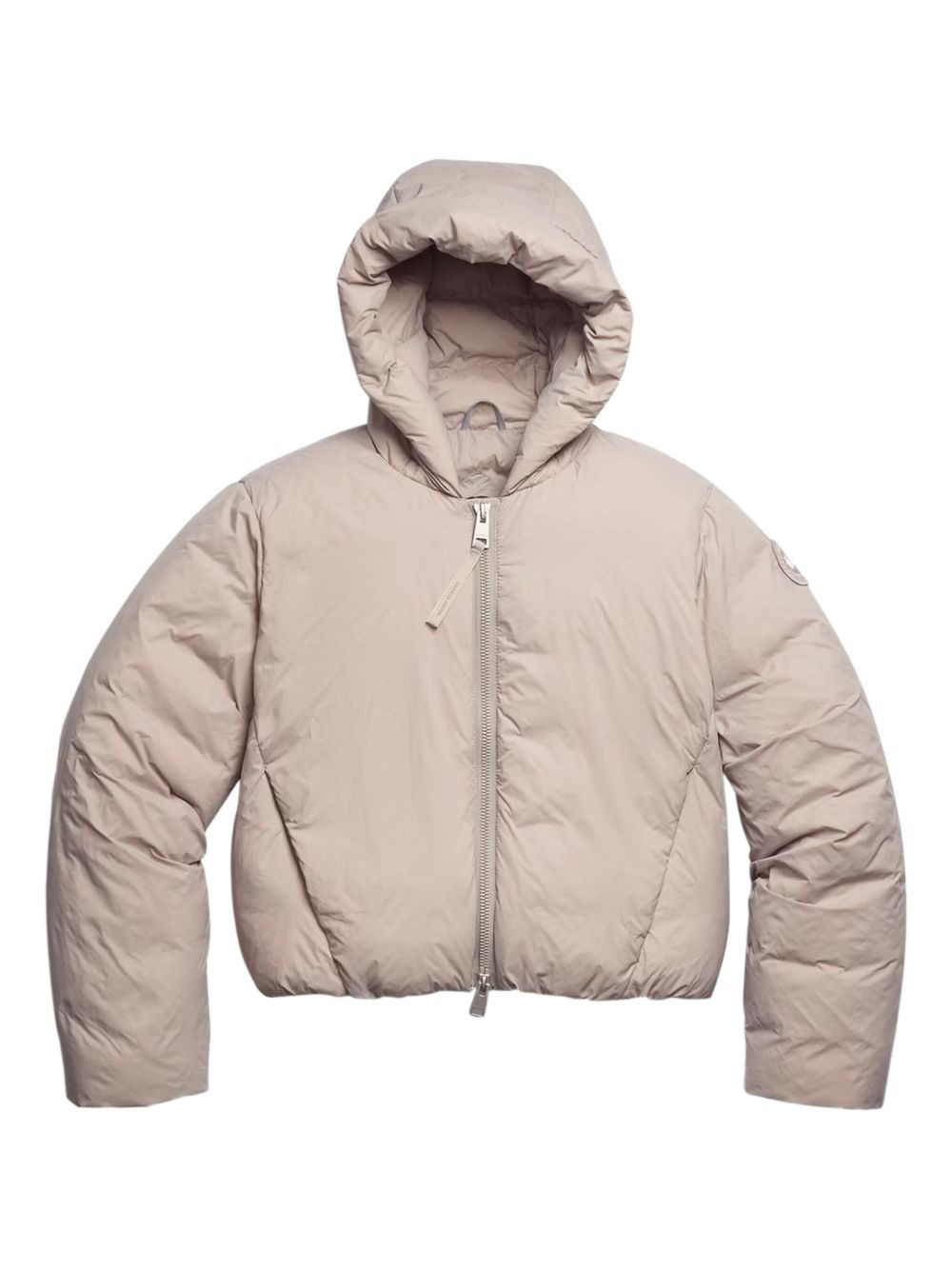 hooded puffer jacket Highlights - Light beige - Hooded - Zip front fastening - Logo patch Imported Composition Recycled Polyamide 100% Washing instructions Read Manufacturer Guidelines