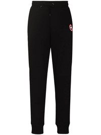 Huron track pants Canada Goose's Huron track pants are a testament to the brand's commitment to comfort. They're crafted from soft cotton and cut to a tapered silhouette that features a supportive elasticated drawstring waistband. Highlights - Black - Cotton - Logo patch to the front - Elasticated ankles - Elasticated drawstring waistband - Tapered leg - Two side slash pockets Made in Italy Composition Cotton 100% SIZE & FIT Model measurements Height 6 ft 2 in(1.87 m) Bust/Chest 38.18 in(97 cm) Hips 36.61 in(93 cm) Waist 29.13 in(74 cm) Measurement INSIDE LEG 29.13 in(74 cm) FRONT RISE 13.38 in(34 cm)