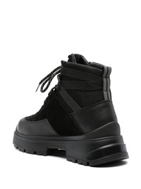 Journey leather boots Rendered in a panelled black design, the Journey boots are crafted from smooth leather. Boasting Canada Goose's logo to the side, they're secured with a lace-up fastening. Highlights - Black - Calf leather - Panelled design - Round toe - Front lace-up fastening - Ankle-length - Ridged rubber sole Made in Italy Composition Leather 100% SIZE & FIT Measurement HEEL 1.77 in(4.5 cm) Sole height 1.18 in(3 cm) HEIGHT 4.72 in(12 cm)