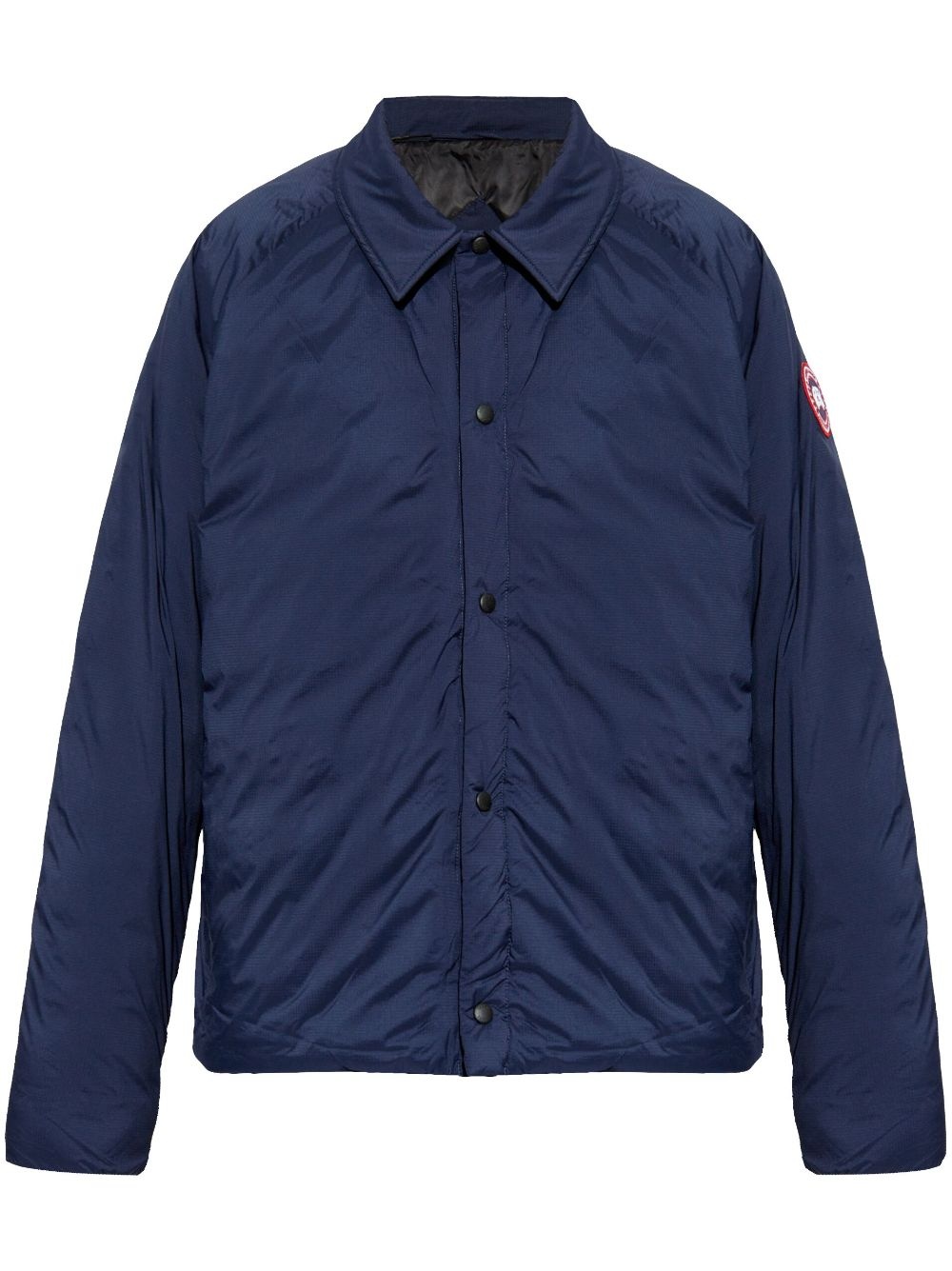 logo-patch jacket Highlights - Blue - Front press-stud fastening - Classic collar - Long sleeves - Logo patch at the sleeve - Two side slit pockets Imported Composition Nylon 100%