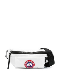 logo-patch padded belt bag Crafted in Canada, this belt bag by Canada Goose is designed for both functionality and style. Multiple pockets allow for ample storage space while the brand's recognisable logo patch adorns the front. Highlights - Optical white/jet black - Padded design - Logo patch to the front - Embroidered logo to the rear - Front zip fastening - Logo-jacquard adjustable waist strap - Main compartment - Internal logo patch - Internal slip pocket Imported Composition Outer: Polyamide 100%, Polyester 100% Lining: Polyester 100%, Polyamide 100% SIZE & FIT Model measurements Height 6 ft 2 in(1.87 m) Bust/Chest 36.41 in(92.5 cm) Hips 37 in(94 cm) Waist 29.52 in(75 cm) Measurement DEPTH 2.36 in(6 cm) HEIGHT 5.9 in(15 cm) TOTAL LENGTH 49.21 in(125 cm) WIDTH 11.81 in(30 cm)