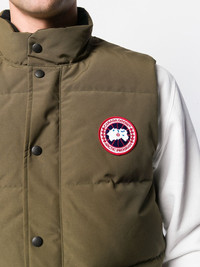 Freestyle vest Highlights - Green cotton blend padded gilet from canada goose featuring a stand up collar, a zip and press stud fastening, two front pockets, a front logo patch and a sleeveless design. Made in Italy Composition Lining: Feather Down 100%, Nylon 100% Outer: Polyester 85%, Cotton 15% SIZE & FIT Model measurements Height 6 ft 2 in(1.87 m) Bust/Chest 37.79 in(96 cm) Hips 37.79 in(96 cm) Waist 30.31 in(77 cm) FittingInformation This piece fits true to size. We recommend you get your regular size Cut for a loose fit Made with a mid-weight fabric Washing instructions Dry Clean Only