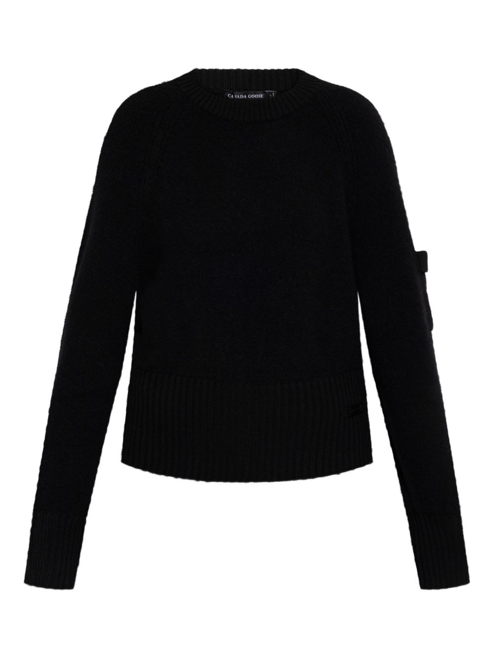 ribbed-hem sweater Highlights - Black - Ribbed hem - Patch pocket - Long sleeves - Crew neck - Alpaca wool blend Imported Composition Alpaca Wool 51%, Polyamide 25%, Wool 22%, Elastane 2% Washing instructions Read Manufacturer Guidelines