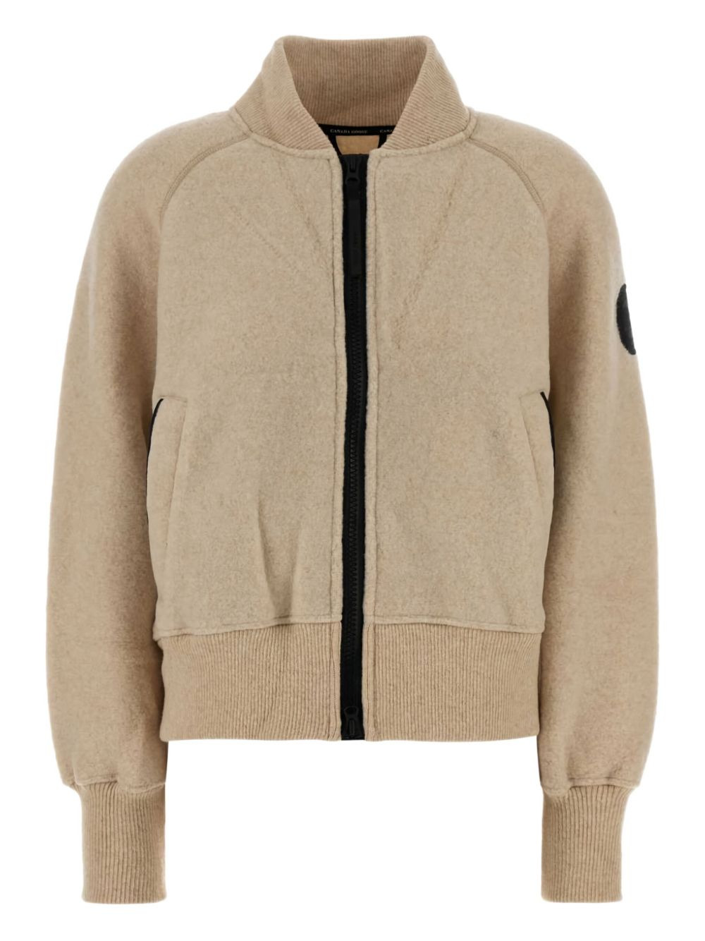 wool blend fleece bomber jacket Highlights - Beige - Ribbed hem - Zip fastening - Raglan sleeves - Patch logo - Diamond-shaped yoke detail Imported Composition Recycled Wool 60%, Lyocell 16%, Polyester 13%, Nylon 8%, Other fibres 3% Washing instructions Read Manufacturer Guidelines