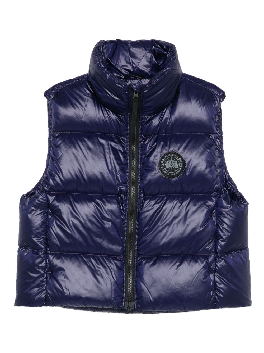 zip-up puffer vest Highlights - Navy blue - Logo patch - Zip fastening - High neck - Sleeveless - Padded design Imported Composition Polyamide 100% SIZE & FIT Model measurements Height 5 ft 10 in(1.77 m) Bust/Chest 32.28 in(82 cm) Hips 35.03 in(89 cm) Waist 25.19 in(64 cm) FittingInformation Designed for a relaxed fit, this piece allows for comfort and movement when worn The internal drawstring at the hem allows for fitted preferences Made from a padded non-stretch fabric, giving it no natural elasticity Washing instructions Read Manufacturer Guidelines