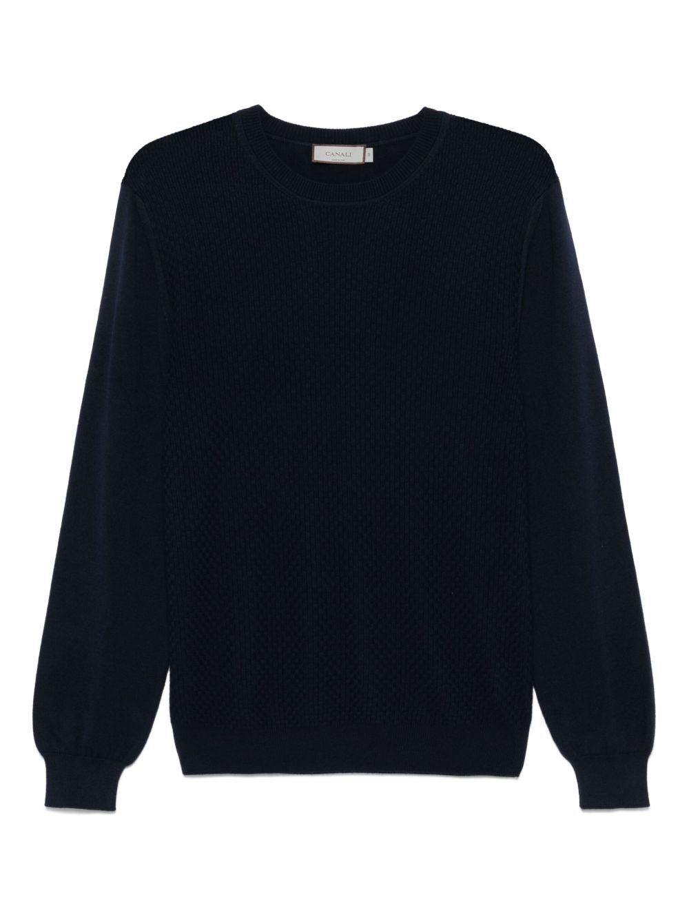 basket-weave sweater Highlights - Navy blue - Ribbed cuffs and hem - Crew neck - Long sleeves Made in Italy Composition Cotton 50%, Modal 50% SIZE & FIT Model measurements Height 6 ft 0 in(1.84 m) Bust/Chest 37.79 in(96 cm) Hips 37 in(94 cm) Waist 31.49 in(80 cm) FittingInformation Designed for a relaxed fit, this piece allows for comfort and movement when worn The ribbed hem offers a close, comfortable fit Made with a midweight knit, this piece offers some stretch