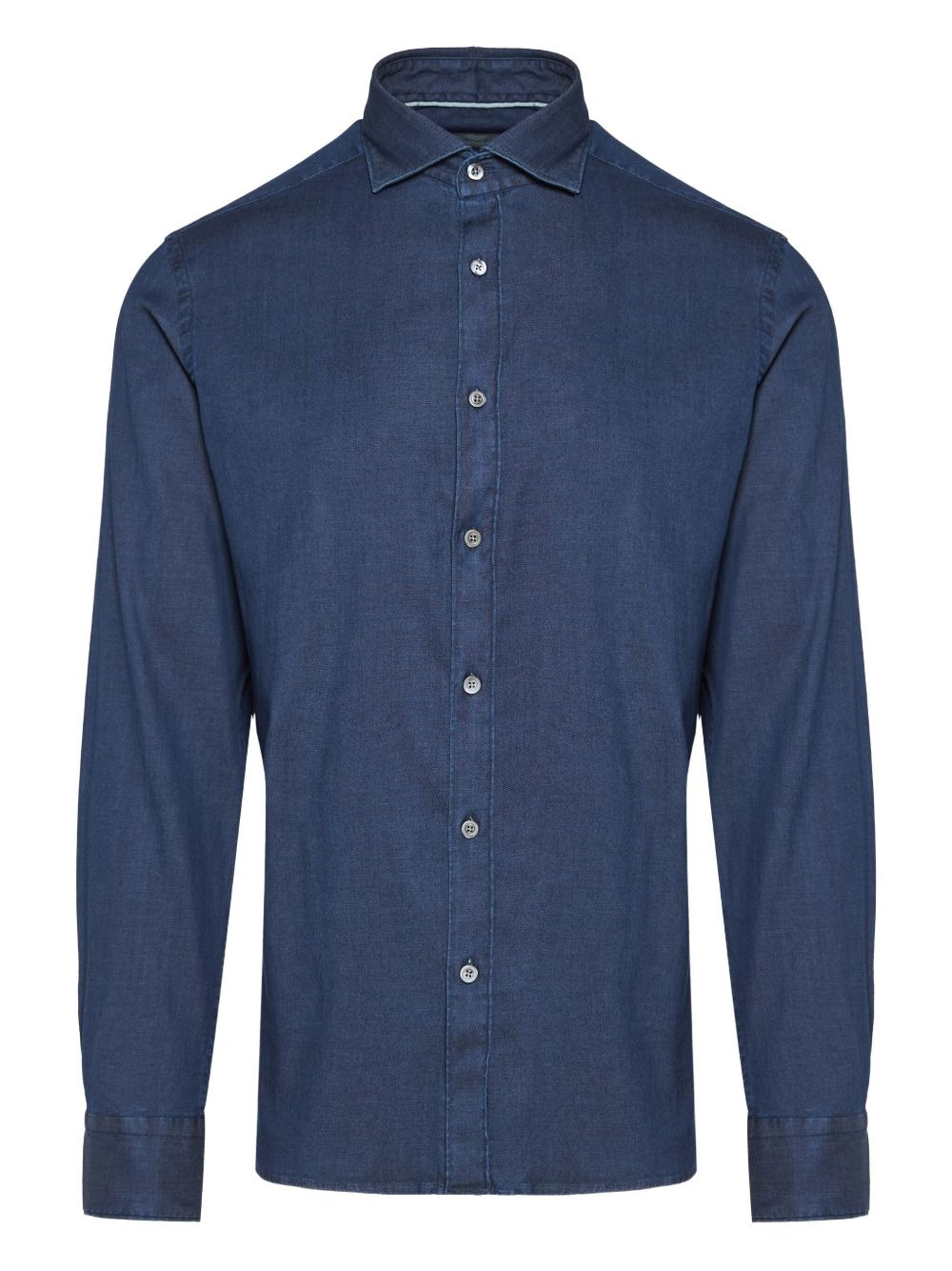 buttoned shirt Highlights - Blue - Button fastening - Long sleeves - Buttoned cuffs - Point collar Made in Italy Composition Cotton 100% Washing instructions Machine Wash