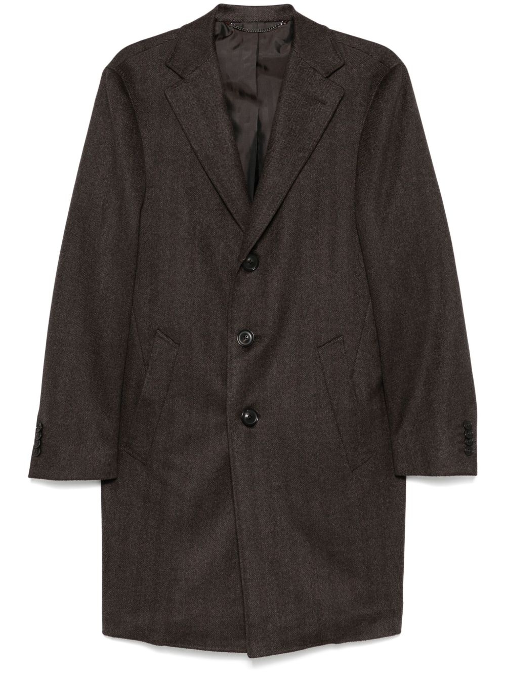 cashmere coat Highlights - Chestnut brown - Cashmere - Herringbone - Front button fastening - Notched lapels - Long sleeves - Buttoned cuffs - Two front welt pockets - Central rear vent - Full lining - Straight hem - Mid-length Made in Italy Composition Outer: Cashmere 100% Lining: Cupro 100%