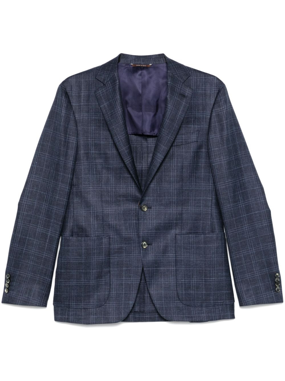 check-pattern blazer Highlights - Oxford blue - Front button fastening - English rear vents - Buttoned-cuff sleeves - Two front patch pockets Made in Italy Composition Wool 49%, Silk 30%, Linen/Flax 21% SIZE & FIT Model measurements Height 6 ft 1 in(1.86 m) Bust/Chest 36.61 in(93 cm) Hips 37 in(94 cm) Waist 28.74 in(73 cm) FittingInformation Designed for a slim fit, offering a comfortable fit that sits just away from the body The vented hem offers movement at the rear Made from a midweight non-stretch fabric Washing instructions Dry Clean Only