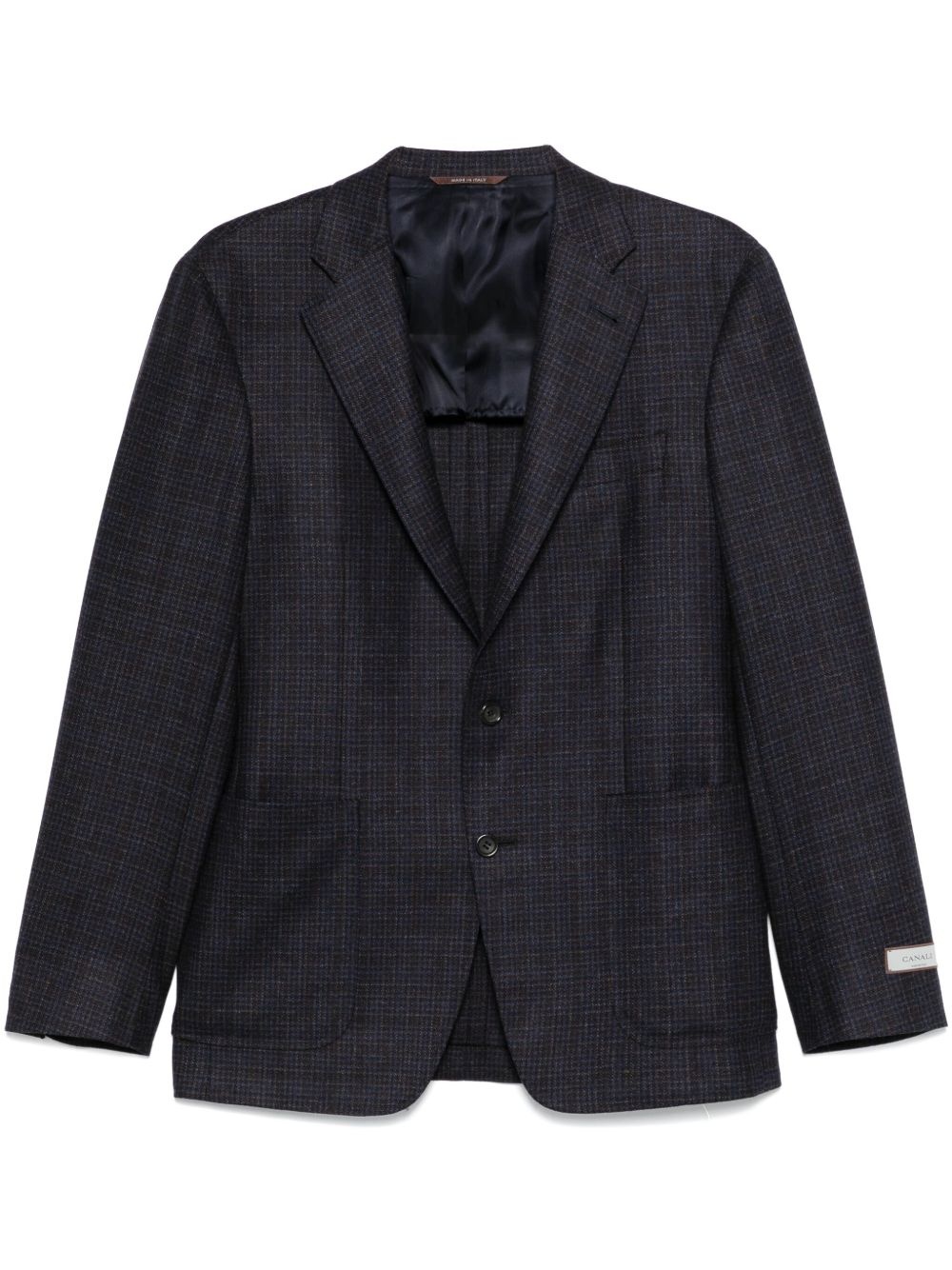 check-pattern blazer Highlights - Navy blue - Front button fastening - Jetted chest pocket - Two front patch pockets - Buttoned cuffs Made in Italy Composition Outer: Wool 100% Lining: Cupro 100% SIZE & FIT Model measurements Height 6 ft 2 in(1.88 m) Bust/Chest 36.61 in(93 cm) Hips 35.82 in(91 cm) Waist 27.95 in(71 cm) FittingInformation Designed for a slim fit, offering a comfortable fit that sits just away from the body The vented hem offers movement at the rear Made from a midweight non-stretch fabric, this piece offers minimal elasticity when worn