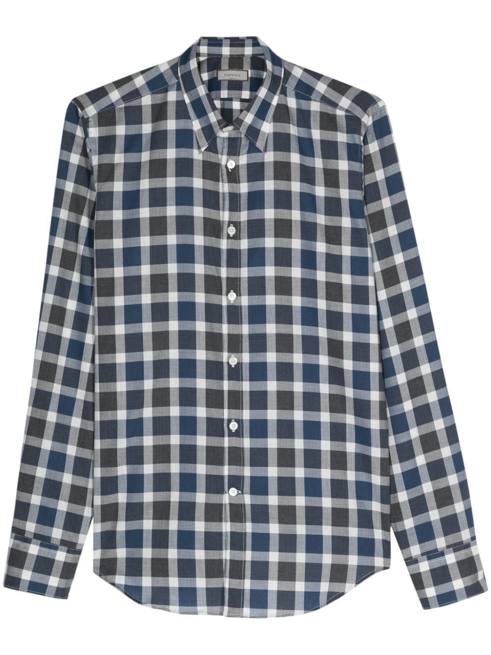 check-pattern cotton shirt Highlights - Blue/grey/white - Cotton - Check pattern - Classic collar - Long sleeves with buttoned cuffs - Curved hem - Front button fastening Made in Italy Composition Cotton 100%