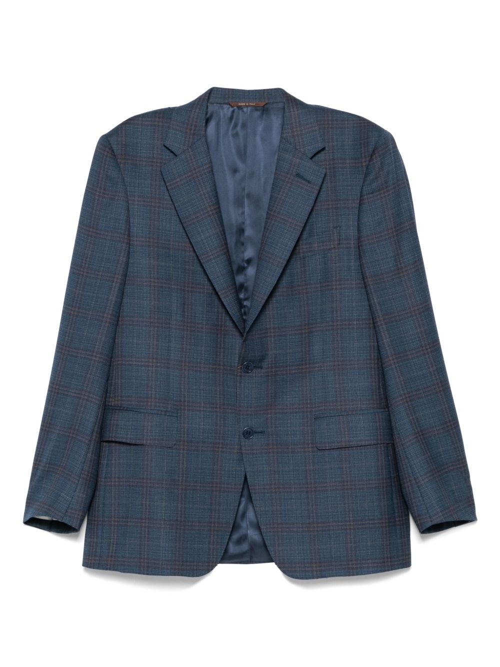 checked blazer Highlights - Navy blue - Front button fastening - Chest welt pocket - Two side flap pockets - Buttoned-cuff sleeves Made in Italy Composition Outer: Wool 100% Lining: Cupro 100% SIZE & FIT Model measurements Height 6 ft 0 in(1.84 m) Bust/Chest 35.82 in(91 cm) Hips 37 in(94 cm) Waist 28.34 in(72 cm) FittingInformation Designed for a slim fit, offering a comfortable fit that sits just away from the body The internal shoulder pads offer a structured shape Made from a midweight non-stretch fabric