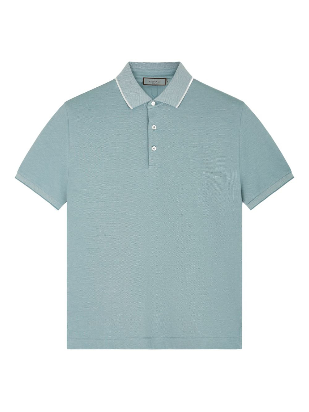 contrast-trim pique polo shirt Highlights - Light blue - Pique knit - Contrast trim at collar - Short sleeves - Button fastening - Straight hem Imported Composition Fabric 100% Washing instructions Read Manufacturer Guidelines