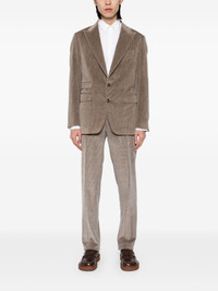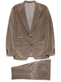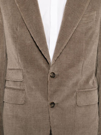 corduroy single-breasted suits Highlights - Sand brown - Front button fastening - Buttoned cuffs - Full lining Made in Italy Composition Outer: Cotton 91%, Cashmere 8%, Spandex/Elastane 1% Lining: Cupro 100% SIZE & FIT Model measurements Height 6 ft 2 in(1.87 m) Bust/Chest 33.07 in(84 cm) Hips 35.43 in(90 cm) Waist 26.77 in(68 cm) FittingInformation Tailored for a regular fit, offering a comfortable loose fit throughout the body The unfinished hems allow for the length to be altered Made from a midweight stretch fabric, this piece offers elasticity and flexibility when worn