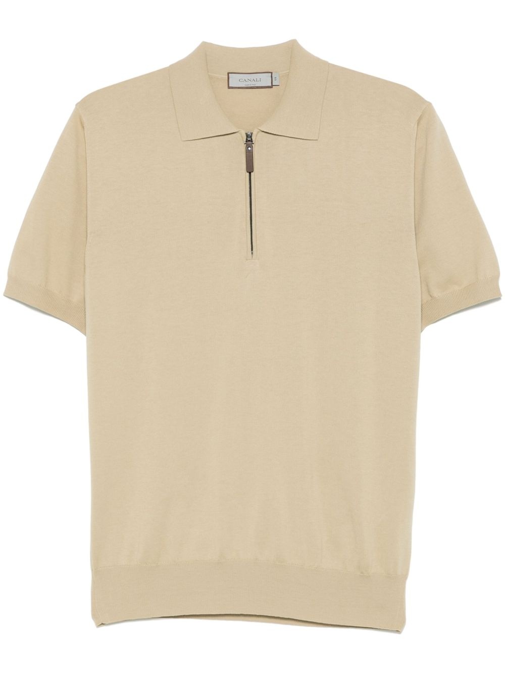 cotton polo shirt Highlights - Sand beige - Half front zip fastening - Short sleeves - Ribbed cuffs and hem Made in Italy Composition Cotton 100% SIZE & FIT Model measurements Height 6 ft 1 in(1.85 m) Bust/Chest 35.82 in(91 cm) Hips 37.79 in(96 cm) Waist 29.13 in(74 cm) FittingInformation Designed for a slim fit, this polo shirt offers a comfortable fit that sits just away from the body Made with a midweight knit, this piece offers some stretch