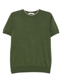 cotton T-shirt Highlights - Olive green - Ribbed cuffs and hem - Crew neck - Short sleeves Made in Italy Composition Cotton 100% SIZE & FIT Model measurements Height 6 ft 2 in(1.87 m) Bust/Chest 36.41 in(92.5 cm) Hips 37 in(94 cm) Waist 29.52 in(75 cm) FittingInformation Designed for a slim fit, offering a comfortable fit that sits just away from the body Made with a lightweight knit, this piece offers some stretch Washing instructions Hand Wash