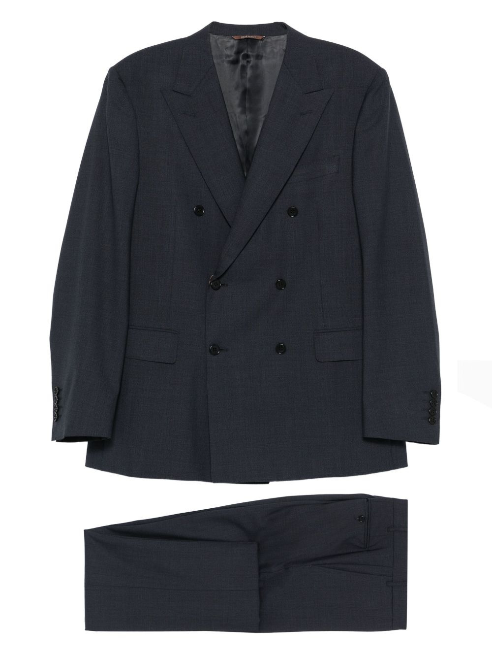 double-breasted suit Highlights - Dark blue - Double-breasted closure - Peak lapels - Flap pockets Made in Italy Composition Lining: Cupro 100% Outer: Wool 100% Washing instructions Dry Clean Only