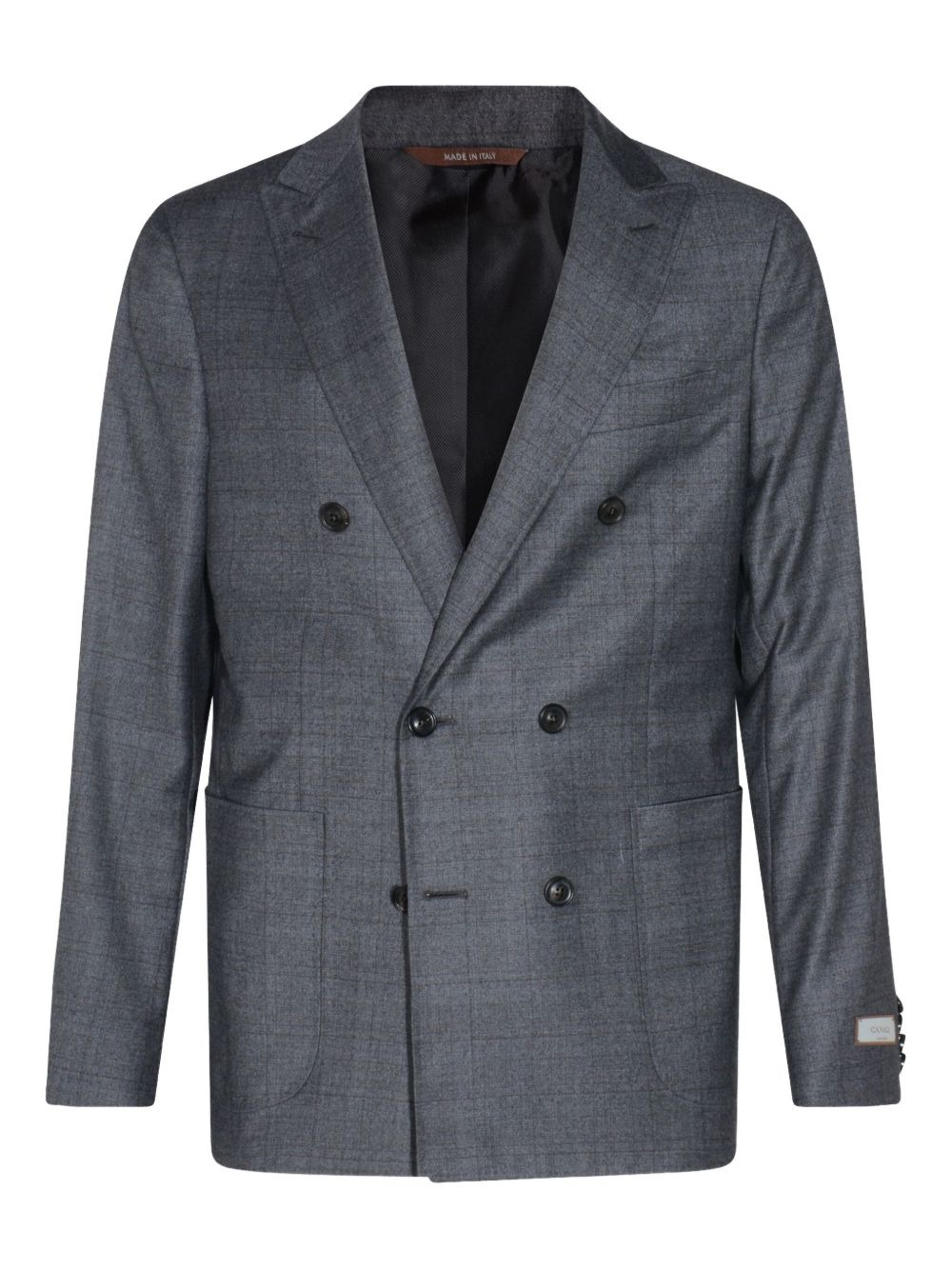 double-breasted wool blazer Highlights - Grey - Double-breasted - Button fastening - Front pockets - Check pattern - Long sleeves Made in Italy Composition Wool 100% Washing instructions Read Manufacturer Guidelines
