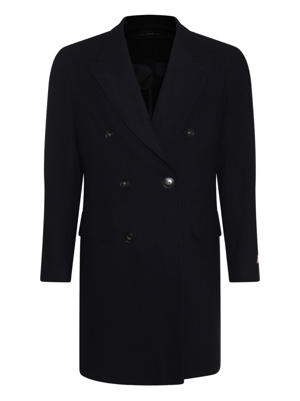 double-breasted wool coat Highlights - Navy blue - Double-breasted fastening - Long sleeves - Straight hem Made in Italy Composition Wool 100% Washing instructions Read Manufacturer Guidelines