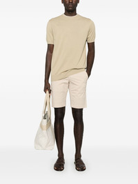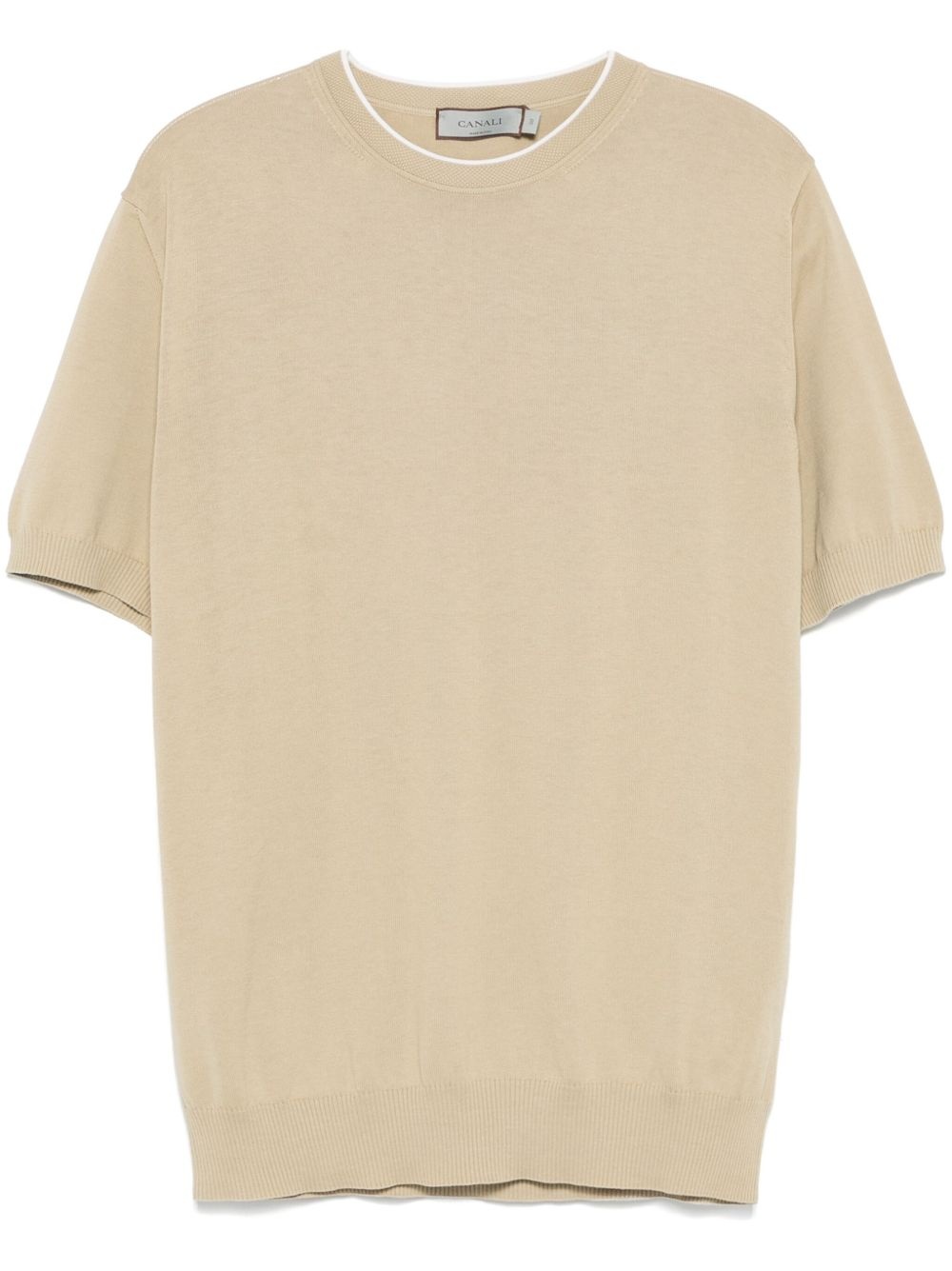 fine-knit T-shirt Highlights - Almond beige - Stripe detailing - Crew neck - Short sleeves Made in Italy Composition Cotton 100% SIZE & FIT Model measurements Height 6 ft 2 in(1.87 m) Bust/Chest 36.41 in(92.5 cm) Hips 37 in(94 cm) Waist 29.52 in(75 cm) FittingInformation Designed for a regular fit allowing for a comfortably loose fit throughout the body Made with a lightweight knit, this piece offers some stretch Washing instructions Hand Wash