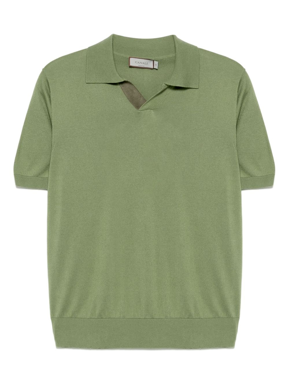 fine-knit T-shirt Highlights - Pastel green - Polo collar - V-neck - Short sleeves Made in Italy Composition Cotton 50%, Modal 50% SIZE & FIT Model measurements Height 6 ft 2 in(1.87 m) Bust/Chest 38.97 in(99 cm) Hips 37.99 in(96.5 cm) Waist 29.52 in(75 cm) FittingInformation Designed for a slim fit, offering a comfortable fit that sits just away from the body Made from a midweight non-stretch fabric, this piece offers minimal elasticity when worn Washing instructions Hand Wash