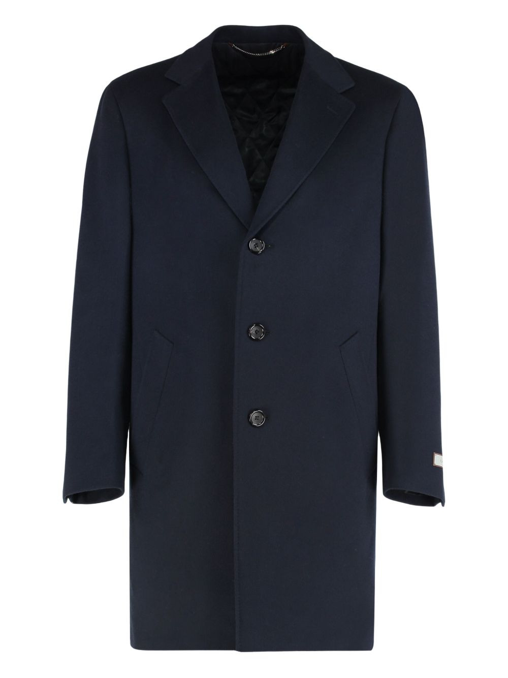front-button coat Highlights - Dark blue - Button fastening - Notched lapels - Long sleeves - Welt pockets - Straight hem Made in Italy Composition Outer: Wool 100% Lining: Cupro 100%
