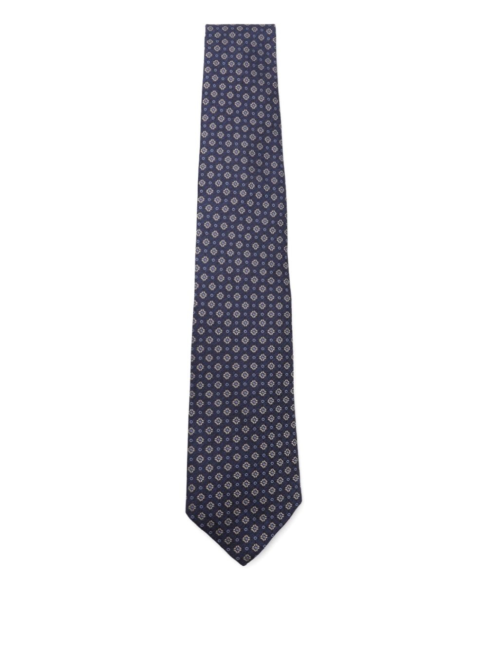 geometric-pattern tie Highlights - Navy blue - Geometric pattern - Pointed tip Made in Italy Composition Wool 100% Washing instructions Read Manufacturer Guidelines
