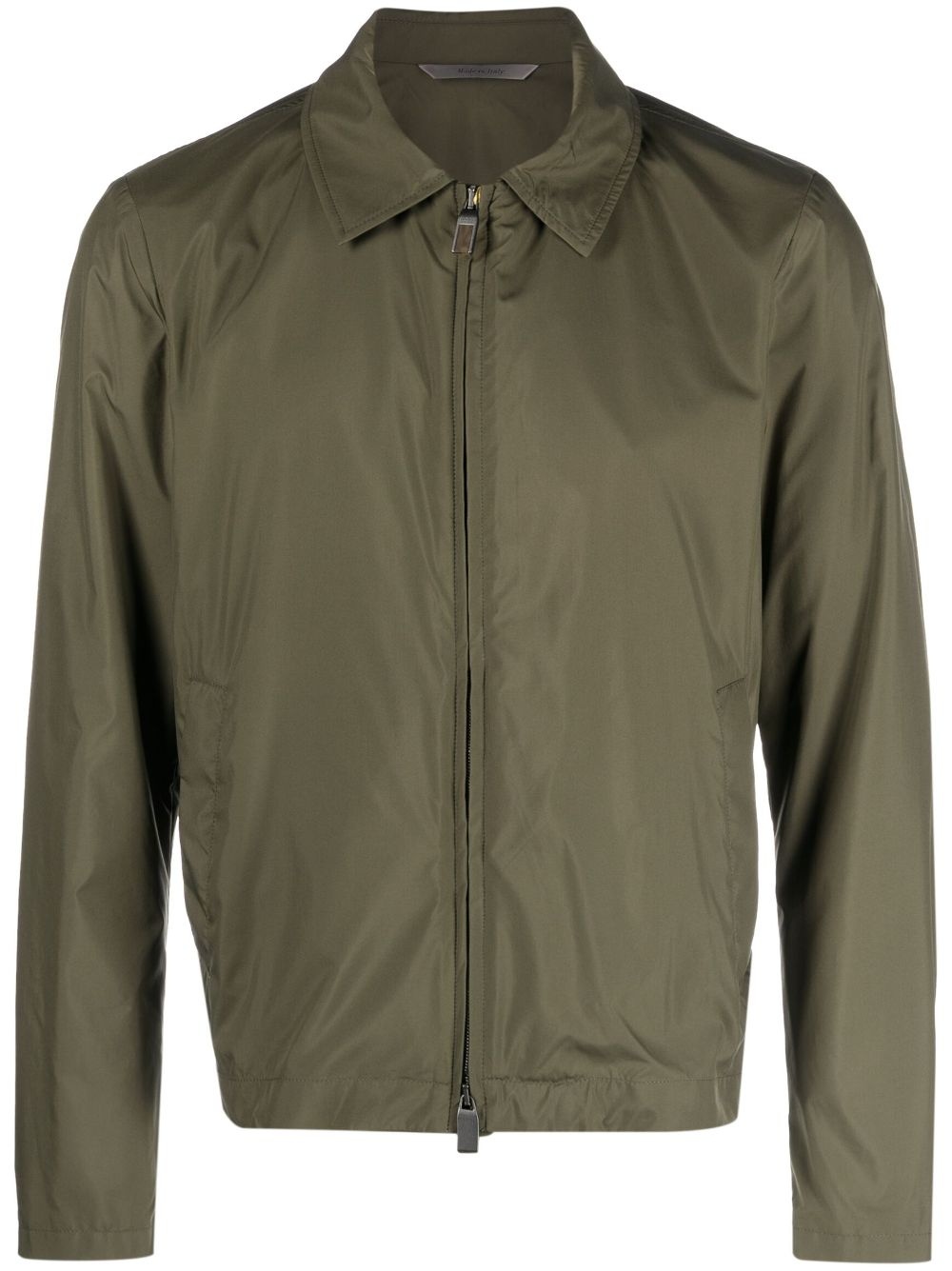 goatskin zip-up shirt jacket Highlights - Olive green - Goatskin - Pointed flat collar - Front two-way zip fastening - Long sleeves - Two front welt pockets - Straight hem Made in Italy Composition Lining: Polyester 100% Outer: Goat Skin 100%, Polyester 100% SIZE & FIT Model measurements Height 6 ft 2 in(1.87 m) Bust/Chest 35.82 in(91 cm) Hips 35.43 in(90 cm) Waist 27.95 in(71 cm) FittingInformation Designed for a boxy fit, intended for a loose fit throughout Made from a lightweight non-stretch fabric This piece fits true to size – take your usual size Washing instructions Dry Clean Only