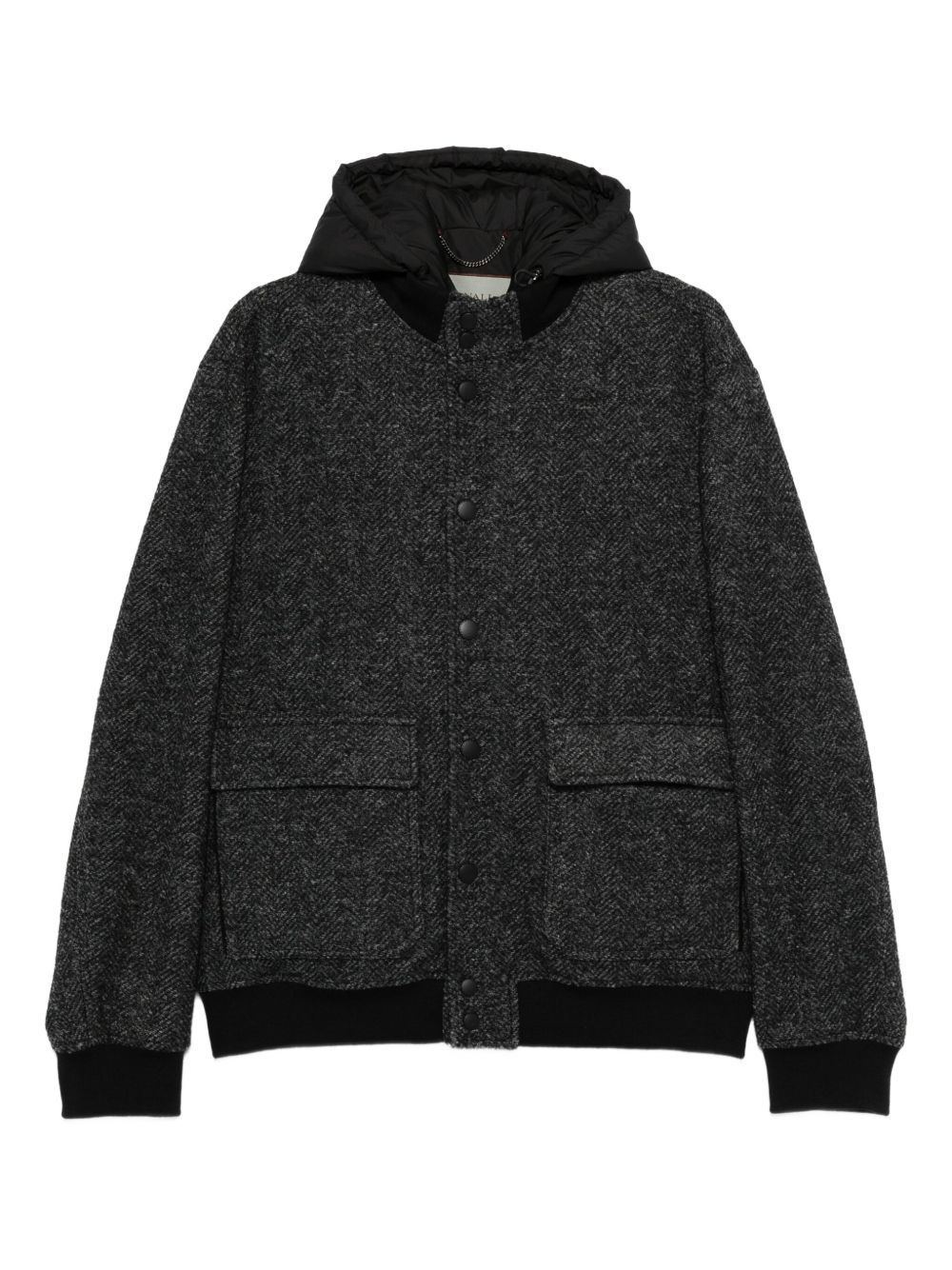 herringbone-pattern hooded jacket