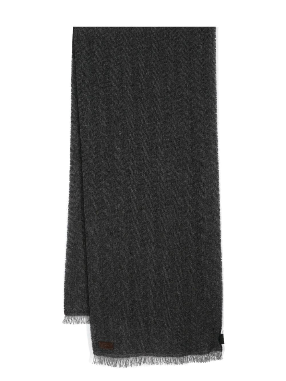 herringbone scarf Highlights - Dark grey - Cashmere - Knitted construction - Herringbone - Logo tag - Frayed edge - Wraparound style Made in Italy Composition Cashmere 100% SIZE & FIT Measurement LENGTH 70.07 in(178 cm) WIDTH 14.96 in(38 cm)
