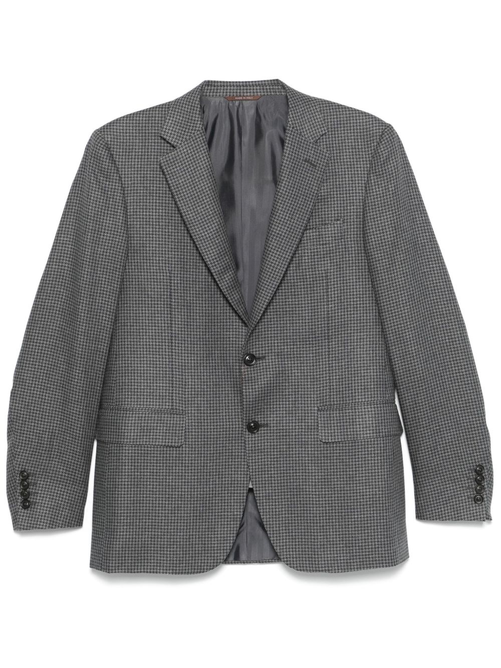 houndstooth-pattern blazer Highlights - Medium grey - Front button fastening - Chest welt pocket - Two side flap pockets - Buttoned-cuff sleeves Made in Italy Composition Outer: Silk 100% Lining: Cupro 100% SIZE & FIT Model measurements Height 6 ft 1 in(1.85 m) Bust/Chest 35.82 in(91 cm) Hips 37.79 in(96 cm) Waist 29.13 in(74 cm) FittingInformation Designed for a slim fit, offering a comfortable fit that sits just away from the body The vented hem offers movement at the rear Made from a midweight non-stretch fabric Washing instructions Dry Clean Only