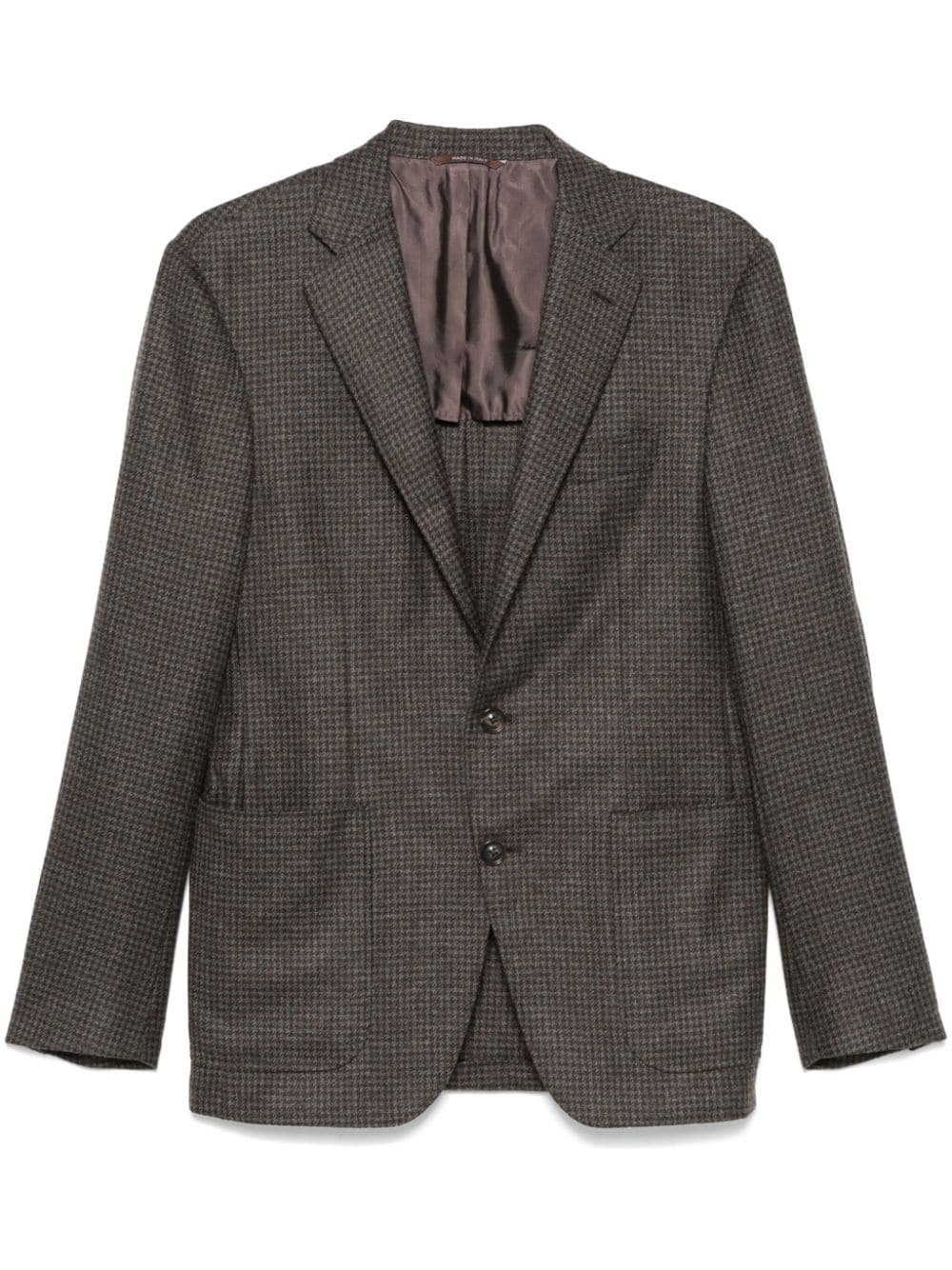 houndstooth-pattern blazer Highlights - Chocolate brown/anthracite grey - Cashmere - Houndstooth pattern - Front button fastening - Notched lapels - Long sleeves - Buttoned cuffs - Chest welt pocket - Dart detailing - Two side patch pockets - English rear vents - Two internal slip pockets - Partial lining - Straight hem Made in Italy Composition Lining: Cupro 100% Outer: Cashmere 100% SIZE & FIT Model measurements Height 6 ft 1 in(1.85 m) Bust/Chest 35.82 in(91 cm) Hips 37.79 in(96 cm) Waist 29.13 in(74 cm) FittingInformation Designed for a slim fit, offering a comfortable fit that sits just away from the body The vented hem offers movement at the rear Made from a midweight non-stretch fabric
