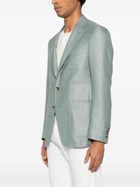 interwoven blazer Highlights - Teal blue - Front button fastening - Buttoned cuffs - English rear vents Made in Italy Composition Lining: Cupro 100% Outer: Wool 65%, Silk 21%, Linen/Flax 14% SIZE & FIT Model measurements Height 6 ft 2 in(1.89 m) Bust/Chest 35.03 in(89 cm) Hips 38.18 in(97 cm) Waist 29.92 in(76 cm) FittingInformation Designed for a slim fit, offering a comfortable fit that sits just away from the body The vented hem offers movement at the rear Made from a midweight non-stretch fabric