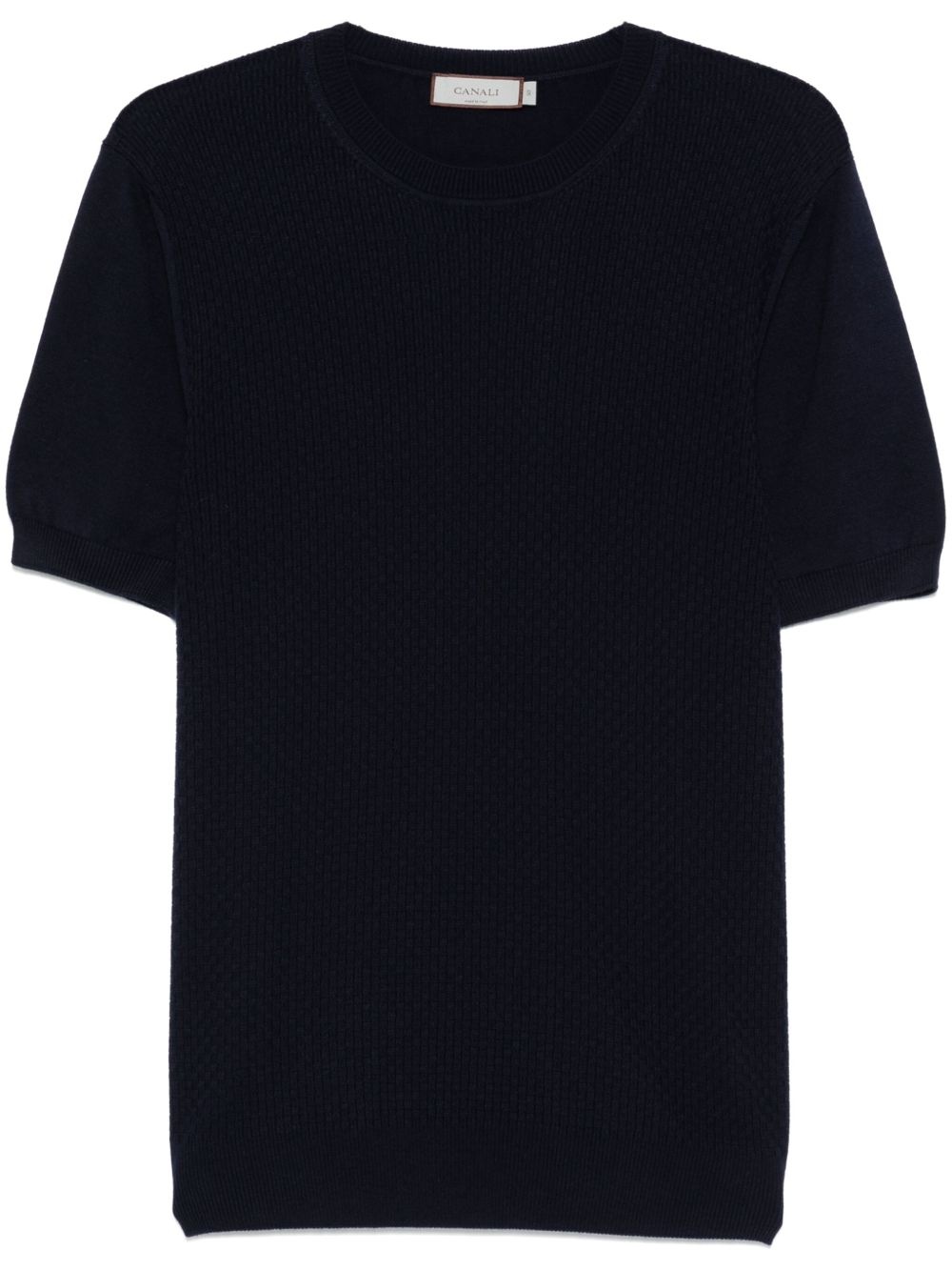 knitted T-shirt Highlights - Navy blue - Ribbed cuffs and hem Made in Italy Composition Cotton 50%, Modal 50% SIZE & FIT Model measurements Height 6 ft 2 in(1.87 m) Bust/Chest 37.79 in(96 cm) Hips 37.79 in(96 cm) Waist 30.31 in(77 cm) FittingInformation Designed for a relaxed fit, this piece allows for comfort and movement when worn Made with a midweight knit, this piece offers some stretch Washing instructions Machine Wash