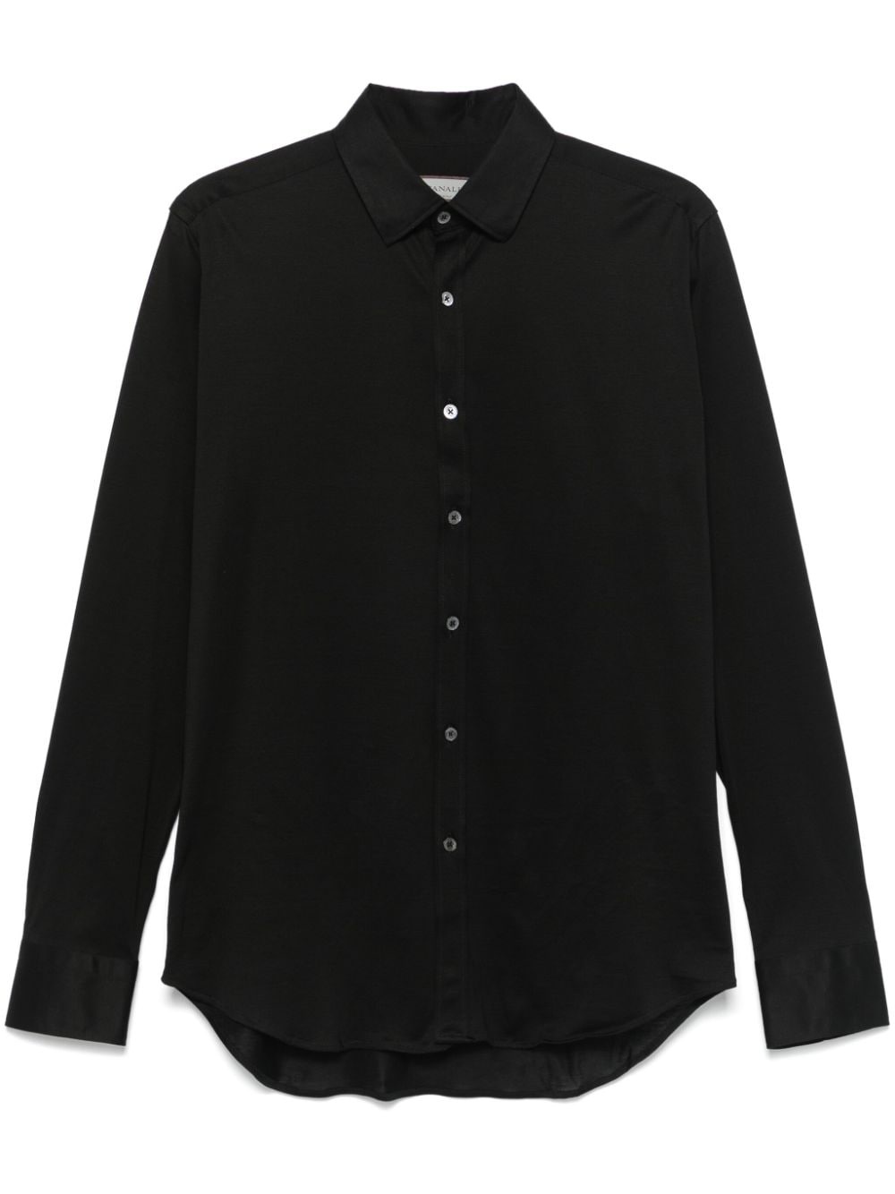 lightweight-jersey shirt Highlights - Black - Cotton - Lightweight jersey - Front button fastening - Classic collar - Long sleeves - Buttoned cuffs - Curved hem Made in Italy Composition Cotton 100% SIZE & FIT Model measurements Height 6 ft 2 in(1.87 m) Bust/Chest 37.79 in(96 cm) Hips 37.79 in(96 cm) Waist 30.31 in(77 cm) Measurement CHEST 44.09 in(112 cm) SLEEVE LENGTH 35.82 in(91 cm) FittingInformation Designed for a slim fit, offering a comfortable fit that sits just away from the body Made from a lightweight non-stretch fabric, this piece offers minimal elasticity when worn